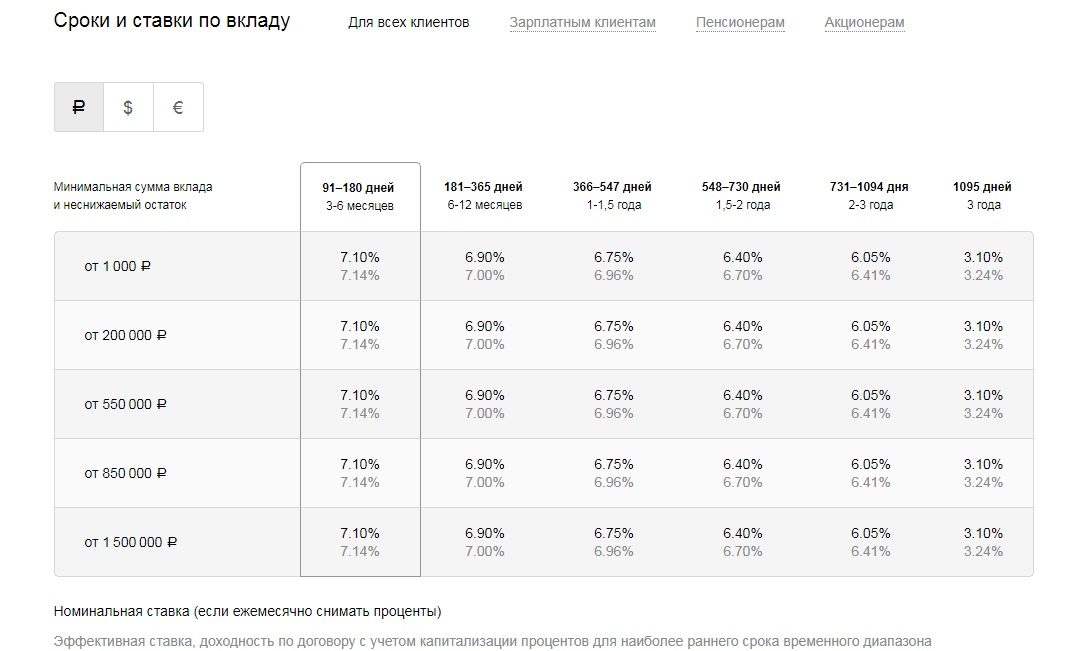 - минимальная сумма – 1 000 руб, 100 евро или 100 долларов США. Максимум депозита условиями продукта не регламентируется;