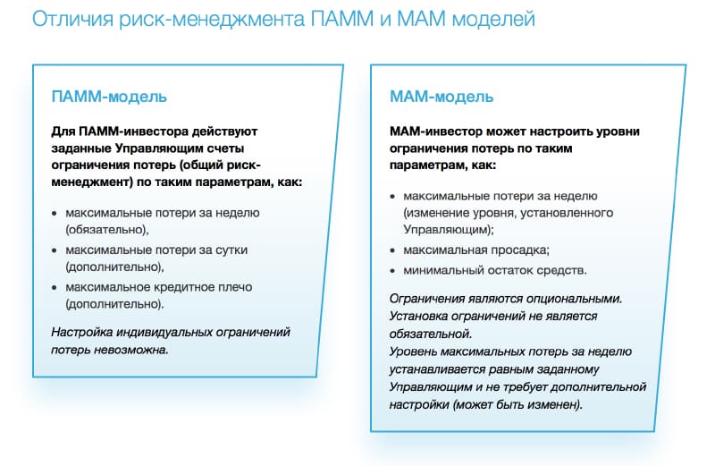 Управляет счетами такого типа менеджер, который имеет большой опыт в совершении сделок и может предоставить положительную динамику. В случае, если вкладчик посчитает, что у менеджера недостаточно высокая доходность по счетам, то он имеет право забрать свои средства и перейти к другому управляющему.