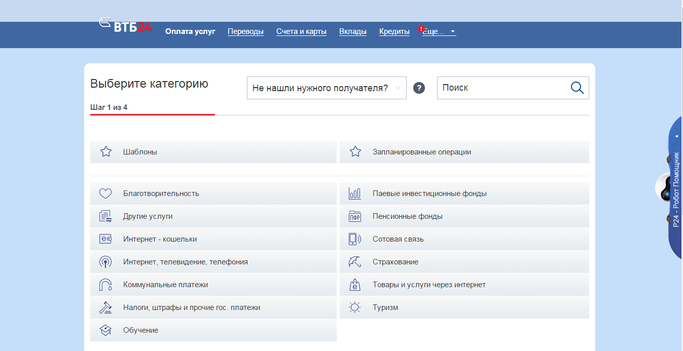 Активные пользователи онлайн-банка ВТБ, могут внести оплату за обучение посредством формирования и оплаты платежей в личном кабинете. Для осуществления операции необходимо следовать таким инструкциям: