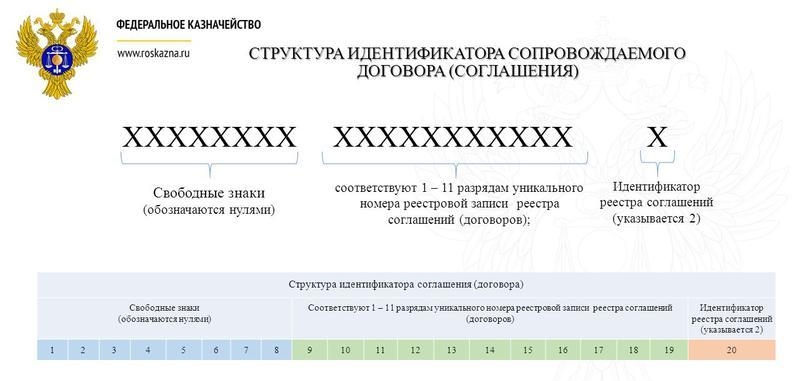 Согласно правилам формирования, каждый индификатор госконтракта состоит из 25 разрядов, в каждом из которых допускается применение цифр от нуля до девяти. Первые две цифры указывают на год заключения сделки. Следующие два разряда следует расшифровывать, как год завершения действия соглашения. Далее три разряда, под номерами 5, 6, 7, содержат информацию об ИНН заказчика. А в восьмом разряде зашифрована информация о способе вычисления исполнителя.