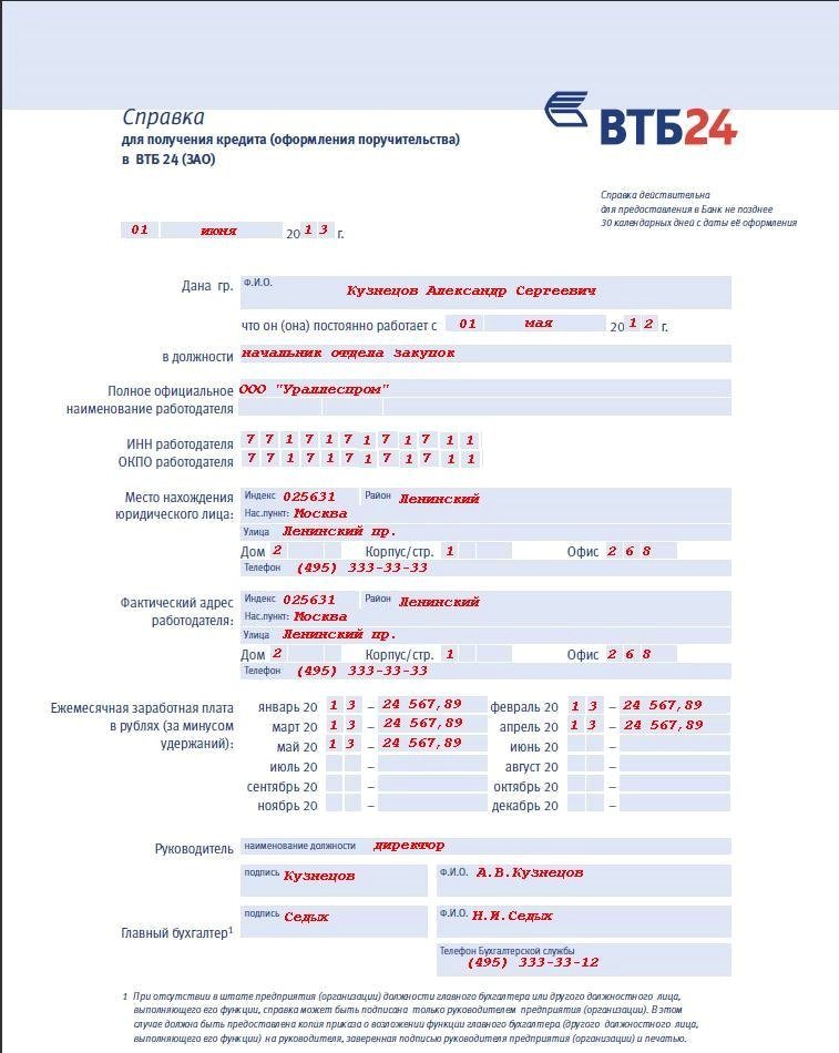 Справка по форме банка ВТБ