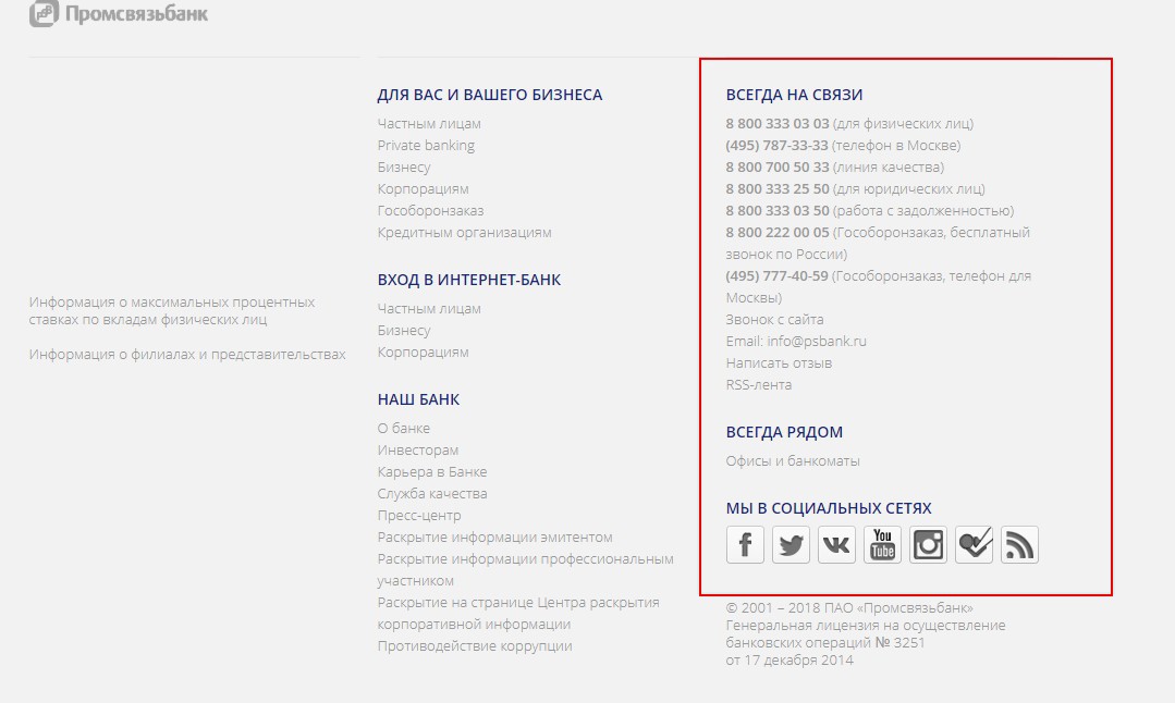 Все эти способы взаимодействия с Промсвязьбанком нужны для его корректной деятельности. Они служат гарантом вежливого, качественного и добросовестного обращения с клиентом.