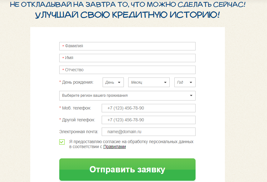 Во время получения кредита заемщик получает полную и бесплатную консультацию от специалистов банка о состоянии кредитной истории и советы по её улучшению.