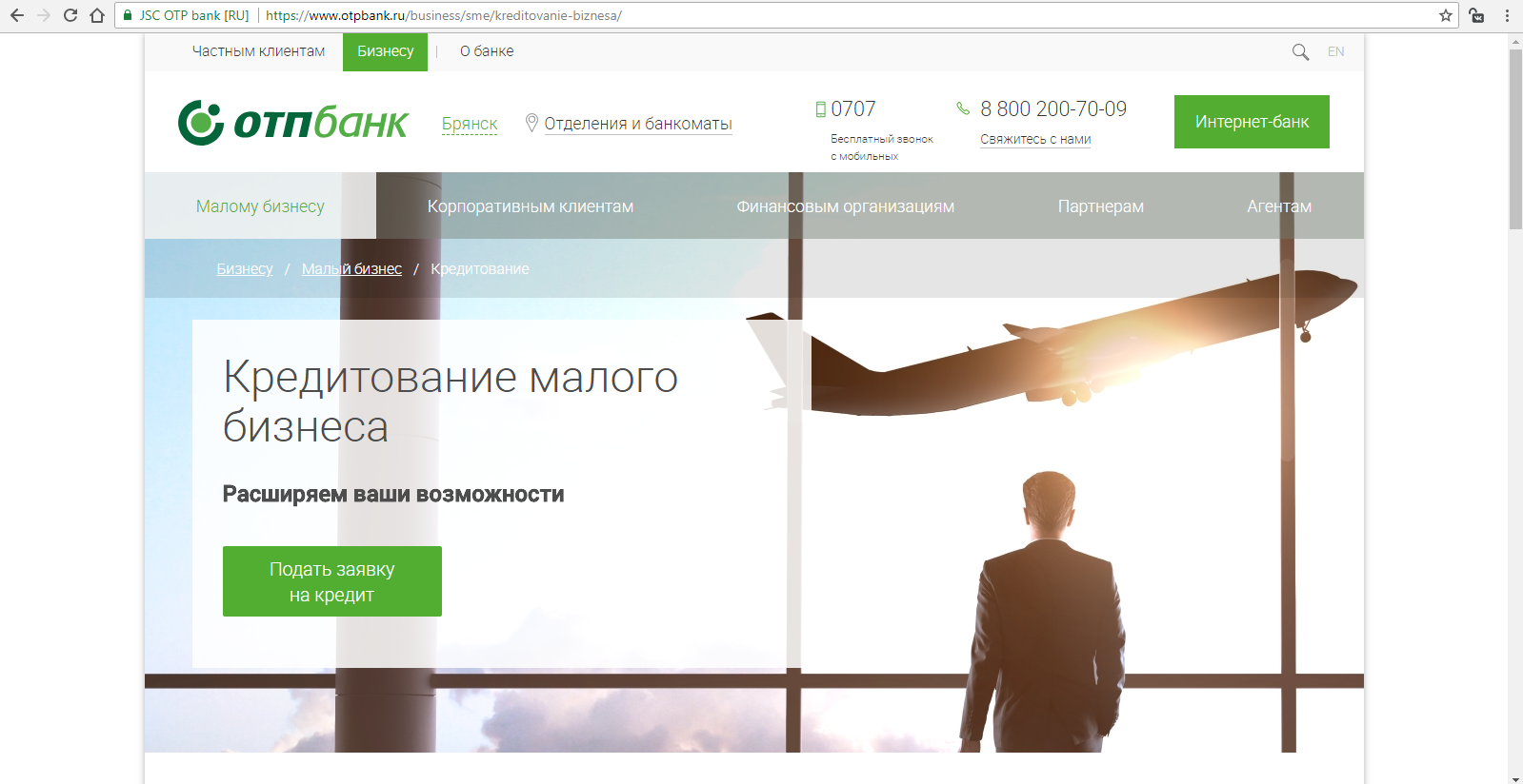 Перейдя на вкладку «Малому бизнесу».