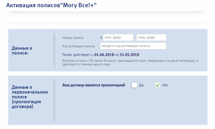 По программе возможно продление страховки. Для этого необходимо приобрести полис повторно и на странице активации на сайте нужно поставить галочку о продлении. После чего откроется окно с вводом номера предыдущего полиса.