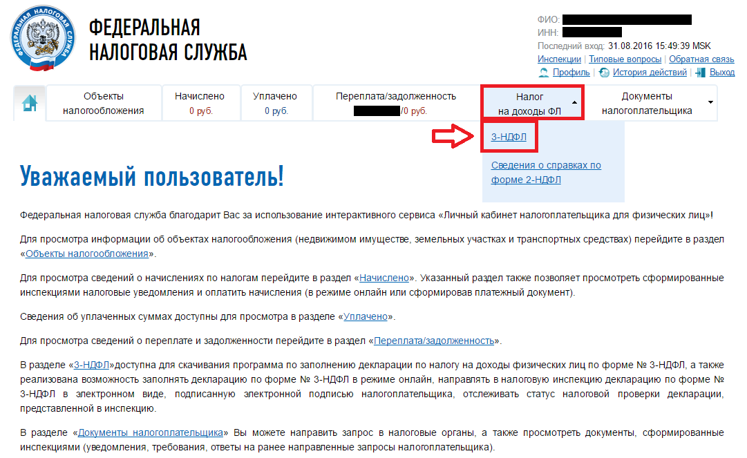 После этого в личном кабинете необходимо заполнить электронную декларацию 3-НДФЛ. По сути этот бланк дублирует сведения, указанные в справке 2-НДФЛ. Заполнение возможно как на сайте nalog.ru, так и с помощью специальных программ.