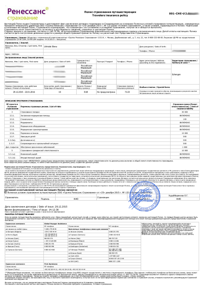 Программы страхования клиентам банка «Ренессанс Кредит»