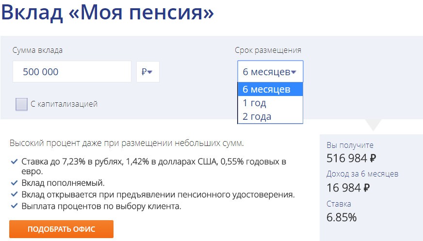 Если пенсионер размещает вклад через интернет-банк, то ставка автоматически повышается.