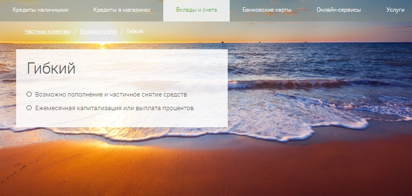 Программа розничного вклада «Гибкий» включает в себя такие условия: