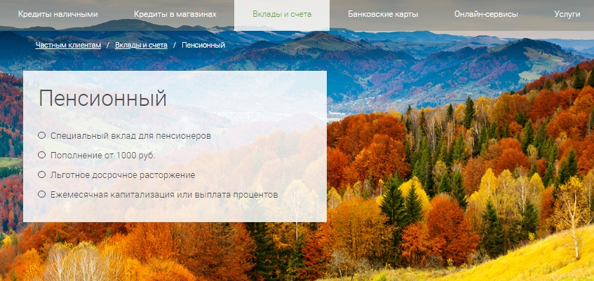 Программа розничного депозита «Пенсионный» включает в себя такие условия: