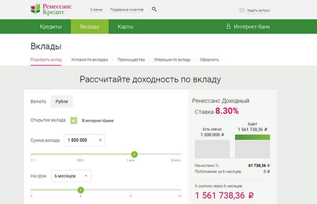 Депозит в банке «Ренессанс Кредит» — это отличный способ во много раз увеличить свой капитал. Он предлагает высокие ставки, а главное все вклады страхуются государством. Поэтому если у вас есть свободные денежные средства, пусть они не лежат, а работают — открывайте вклад и получайте с него процент!